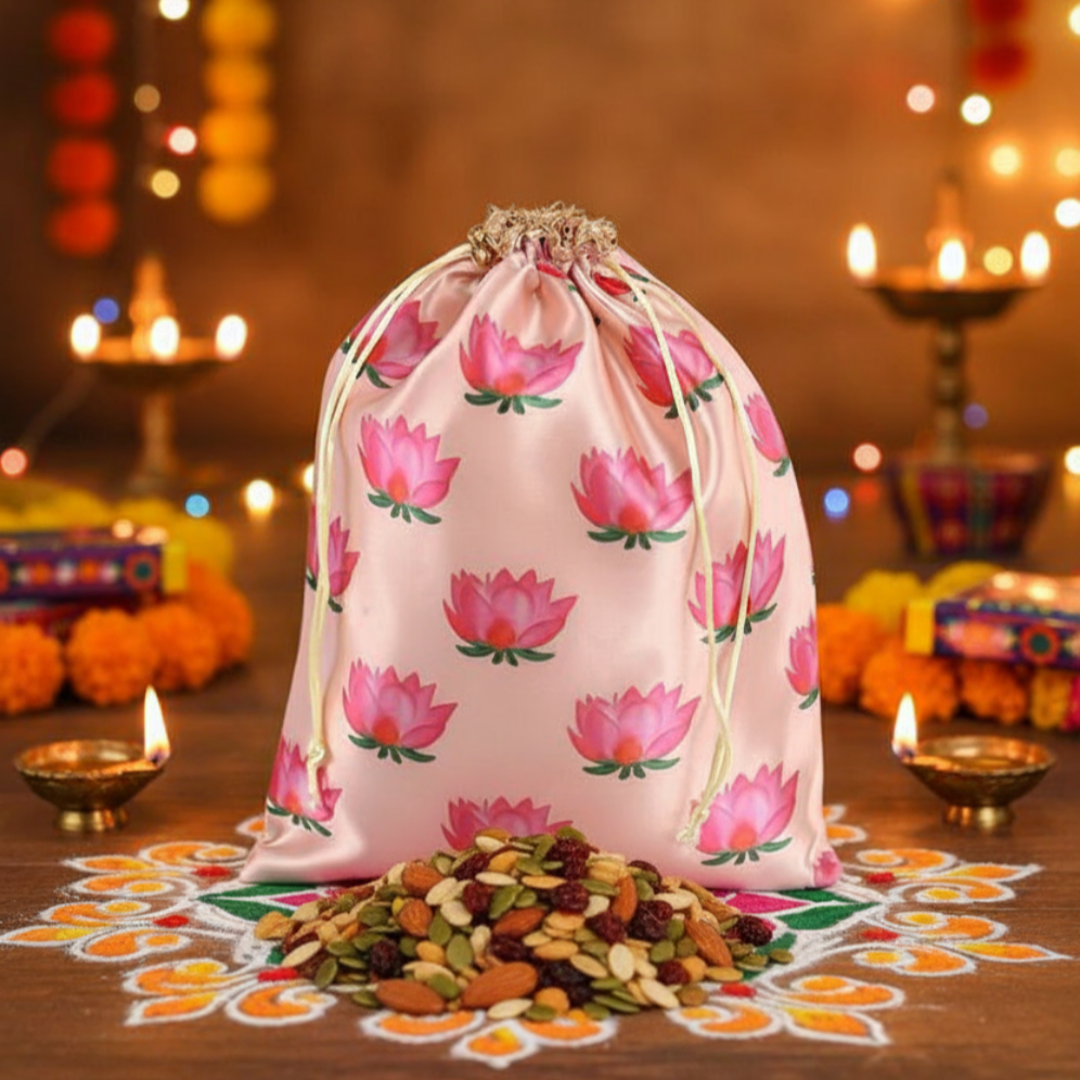 Get your crunch on with our 250 gm Trail Mix! This mix of pumpkin, watermelon seeds, almonds, cashews, dried cranberries, and raisins packed in a festive potli is perfect for on-the-go snacking.